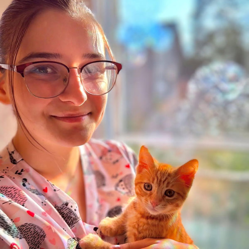 Originally from Lawton, MI, Alecia shares her home with quite the menagerie—two cats, four rats, a variety of fish and shrimp, and even two Giant Madagascar Hissing Cockroaches! Her love for exotic animals drives her to advocate for even the most misunderstood creatures, and she’s proud to be in a role where she can speak up for those who can’t. Whether it’s creepy, crawly, furry, or finned, Alecia is always excited to help care for the critters that come through our doors! In her free time, she enjoys oil painting, video games, and baking up sweet treats.